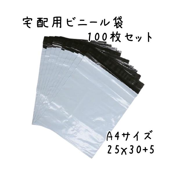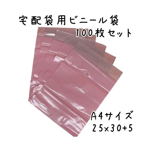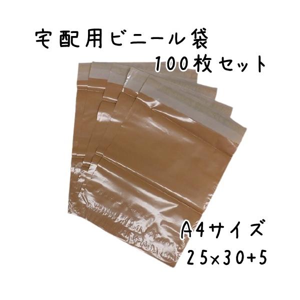 宅配ビニール袋 テープ付 A4サイズ+ 100枚セット 横25cmx(縦30cm+5cm) 全3色(ホワイト、ピンク、ブラウン)