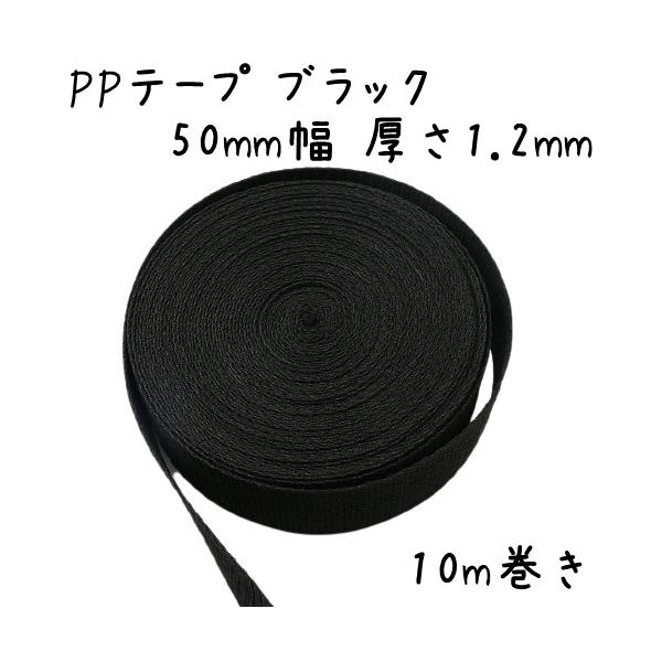 PPテープ 10m巻き 厚さ1.2mm 50mm 幅 手芸 カバン テープ ポリプロピレン リプロン ショルダー ストラップ ベルト ppテープショルダー 卸 ハンドメイド ブラック