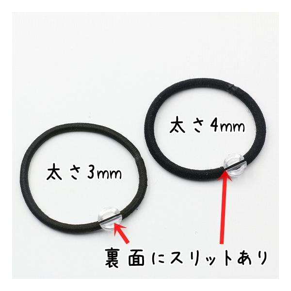 3mm〜4mm径のヘアゴムにほどよいサイズです。