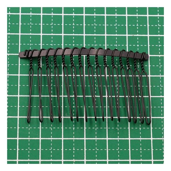 ヘアコーム 15本足 10個セット ヘアアクセサリー 髪留め ハンドメイド 手芸 パーツ シンプル カーブ 粗め 荒め 金属製 金属 材料 まとめ買い 卸 金具 ブラック