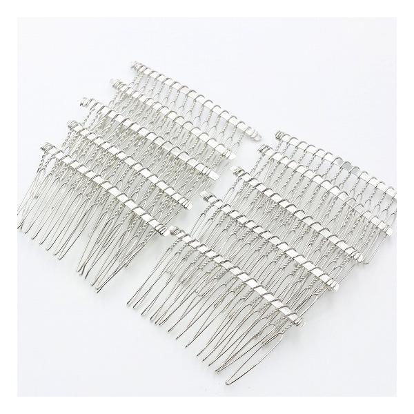 ヘアコーム 15本足 10個セット ヘアアクセサリー 髪留め ハンドメイド 手芸 パーツ シンプル カーブ 粗め 荒め 金属製 金属 材料 まとめ買い 卸 金具 シルバー