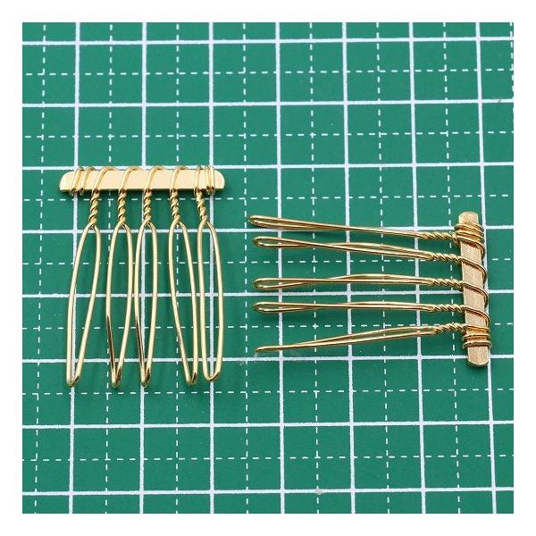 ヘアコーム 5本足 10個セット ヘアアクセサリー 髪留め ハンドメイド 手芸 パーツ シンプル カーブ 粗め 荒め 金属製 金属 材料 まとめ買い 卸 金具 ゴールド