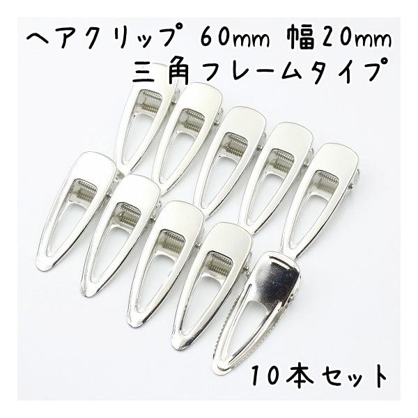 ヘアクリップ 60mm 幅20mm 三角フレーム型ショートタイプ 10本 (全2色 ライトゴールド・シルバー)