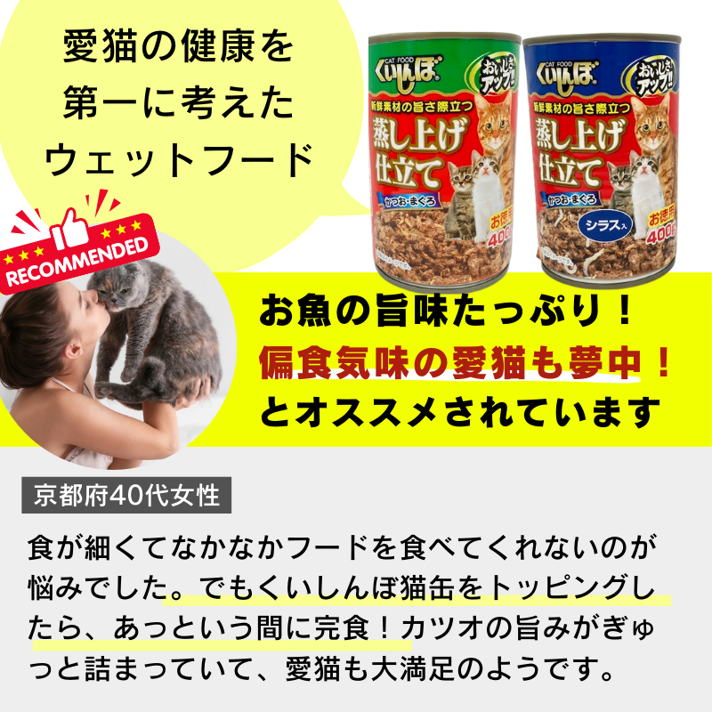 くいしんぼ 蒸し上げ仕立て シラス ササミ かつお節 かつお・まぐろ カニカマ 400g×24個セット 缶詰 キャットフード 多頭飼い