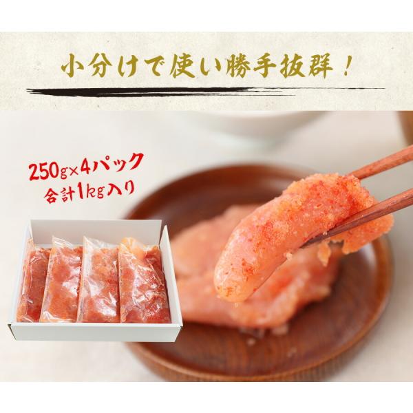 明太子 切れ子 無着色 250g×4 小分け 送料無料 一部地域 対象外 梅一幸