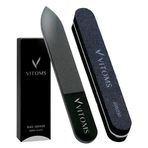 TVシューイチで紹介 爪やすり 爪磨き ガラスネイルシャイナー 艶出し ピカピカ ネイルケアセット ガラス つめみがき つめやすり VITOMS ビトムス ブラック