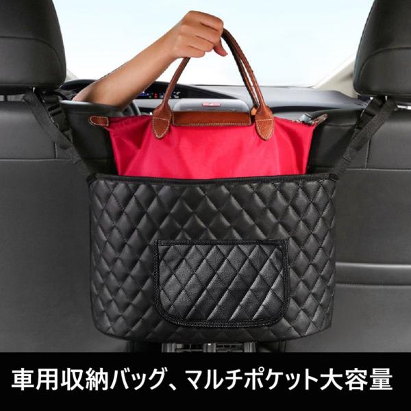 車用収納ポケット 車収納バック ポケット 車内収納袋 多機能 省スペース 折り畳み式 ティッシュ収納 車 簡単に取り付け 小物収納(PU黒)