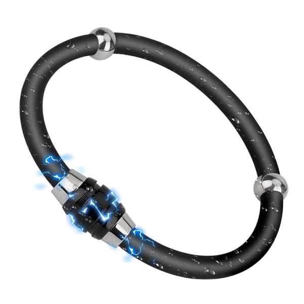 静電気除去 ブレスレット 磁気 スポーツ シリコンブレスレット 防水 静電気防止グッズ 静電気軽減 静電気対策 最強 秋冬乾燥季節対応 19CM Notバングル ブラック