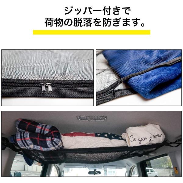 車用天井収納ネット 天井ルーフネット2層ネット ジッパー付きラゲッジネット 天井収納 荷物固定 収納に便利グッズ 荷物落下防止 車中泊