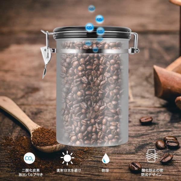 【コーヒー豆、挽いた粉】丸ごとまたは挽いたコーヒー豆、お茶、小麦粉、砂糖などを保管するのに最適な保管庫です。1Lの容量は約260gのコーヒー粉と260gのコーヒー豆がストレンジでき、1.5Lの容量は約350gのコーヒー粉と350gのコーヒー豆が保管できます。コーヒー罐の上部とその体の中に、シリコン環が付きなので、中のコーヒー豆は腐蝕と酸化ができません。