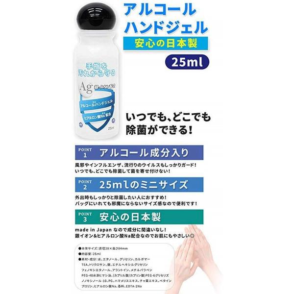 在庫あり アルコール ハンドジェル 25mL アルコール 消毒 日本製 ウイルス除菌 携帯用 銀イオン配合 ヒアルロン酸Na配合