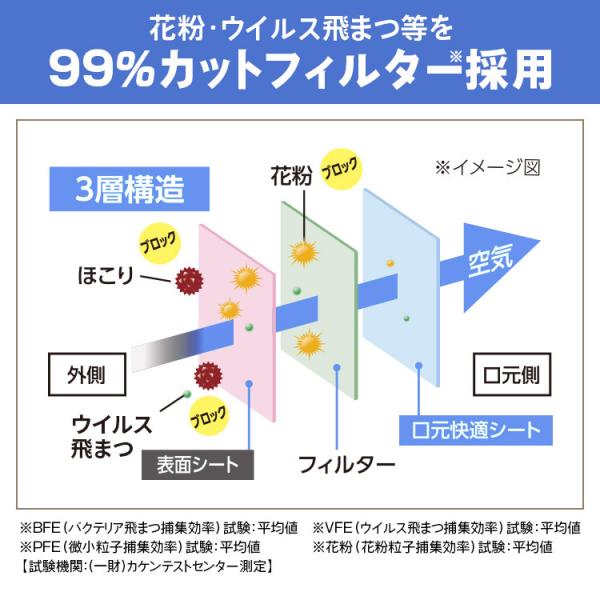 花粉やウイルス飛沫などを99%カットするフィルターを採用。