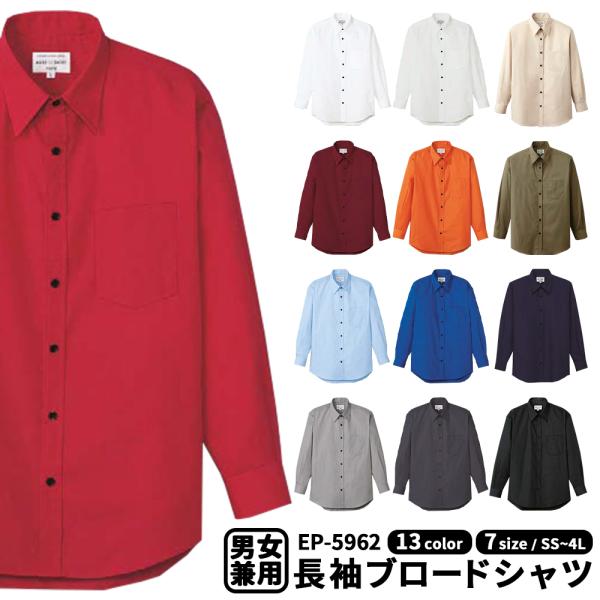 arbe アルベ 男女兼用 ブロードシャツ 無地シャツ 長袖 白 黒 カッターシャツ 男性用 女性用 業務用 ユニフォーム カフェ ホール スタッフ ep-5962 宅配のみ