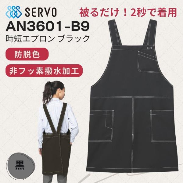 時短エプロン SERVO 男女兼用 黒 フリーサイズ 調理 ユニフォーム カフェ/飲食店/厨房/接客