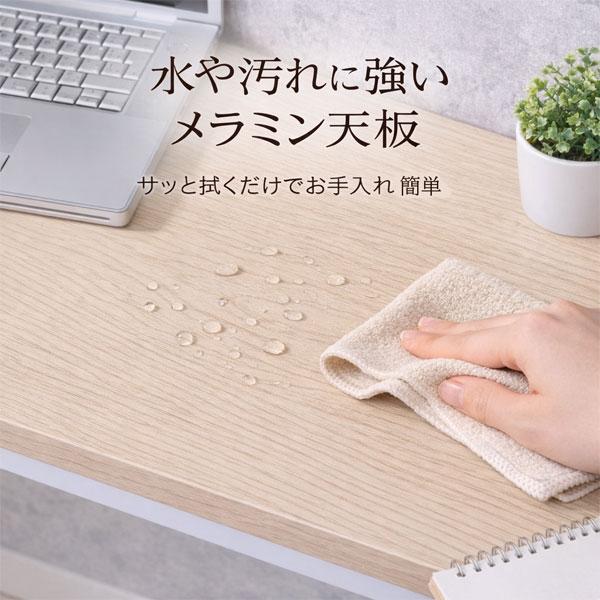 天板にはメラミン加工を施しており、水や汚れに配慮した仕様です。汚れてもサッと拭くだけでお手入れがしやすく、毎日の使用にも向いています。