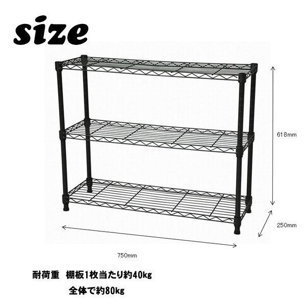 スチールラック 3段 幅75×奥行25 スリムラック メタルラック 可動棚 アジャスター付き プリンター台 キッチンラック 収納棚 幅75cm