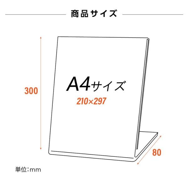 L字 アクリルフォトフレーム スタンド A4 メニュースタンド ポスター差し替え簡単 飲食店 オフィス 案内板 L型 片面用 掲示用品 a4ams-300