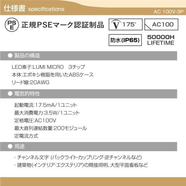 内照アクリル・FF看板向けLEDモジュールAC100V対応(ac100v-3p)