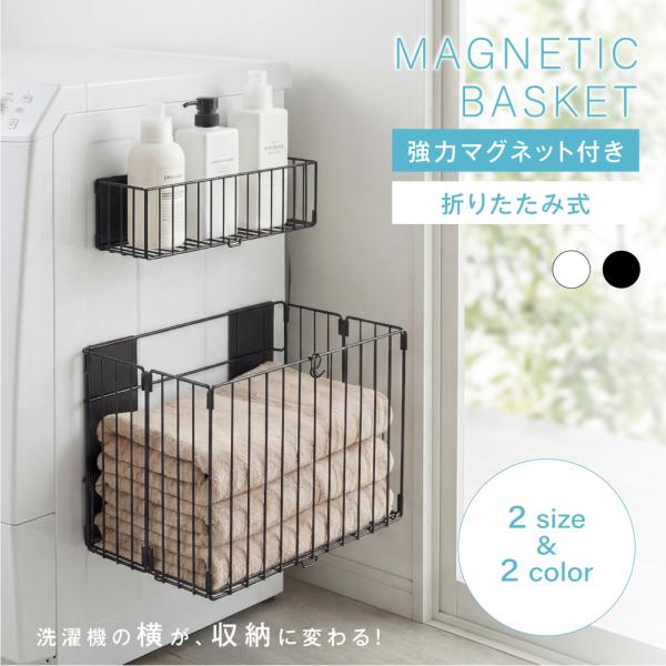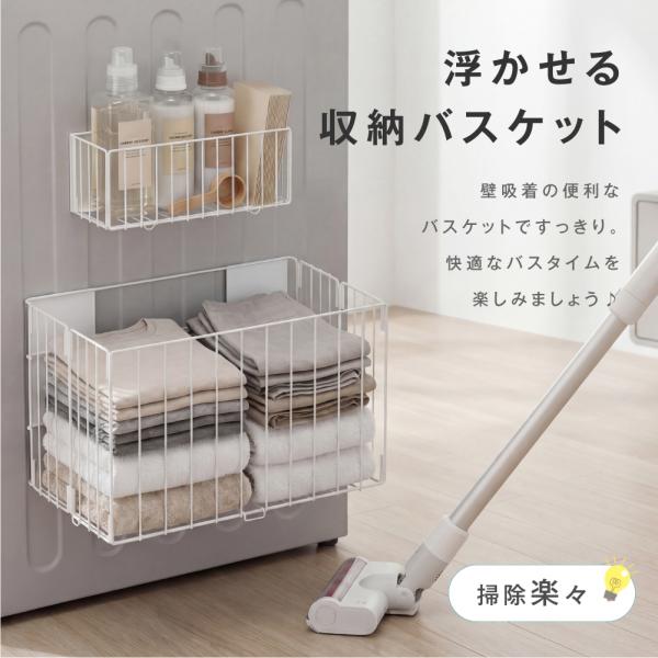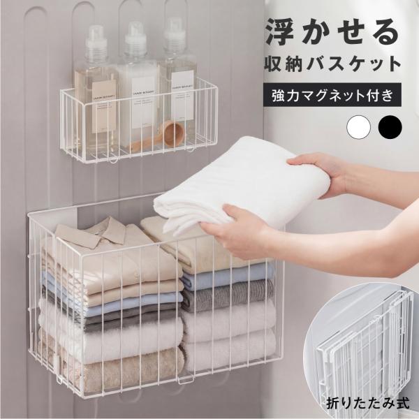 【簡単取り付け】洗濯用具や浴室用品をひとまとめに収納できて見た目もスッキリ。裏面が強力に吸着するラバーマグネットのため、洗濯用の洗剤や用具を収納しても安定度抜群!