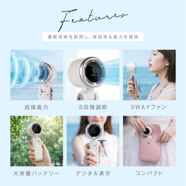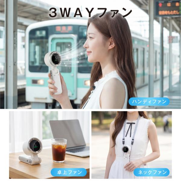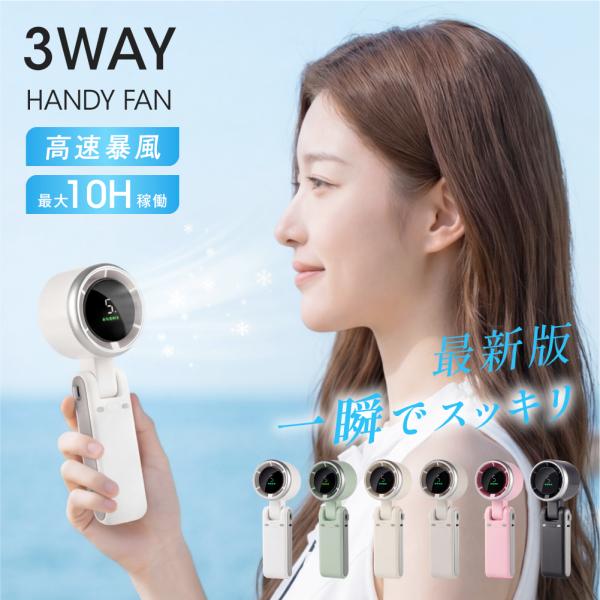 ハンディファン 3way ハンディ扇風機 携帯扇風機 冷風機 小型 手持ち扇風機 折り畳み 風量5段階 デジタル表示 首かけ 超静音 USB充電式 ミニ扇風機 卓上