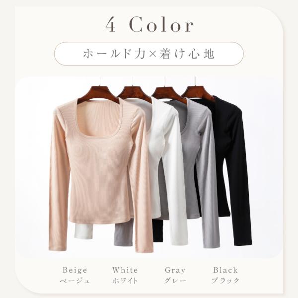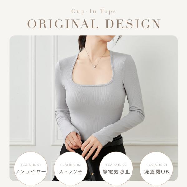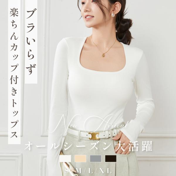 ニット 長袖 インナーカップ付き シンプル きれいめ レディース クルーネック 柔らかい トップス シンプル伸縮性 tシャツ長袖 肌着 おしゃれ 通勤 秋冬