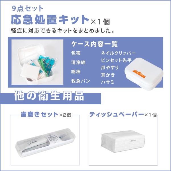 【衛生・医薬】応急処置キットx1/歯磨きセットx2/ウェットティッシュx1