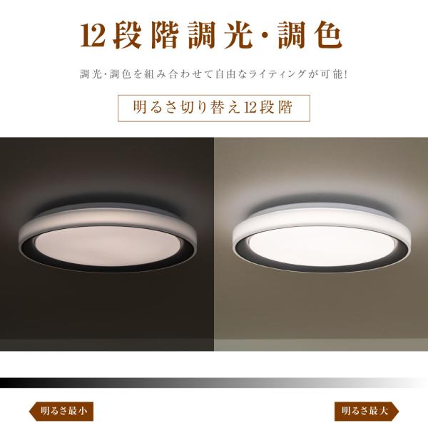 【製品仕様】商品サイズ:約Φ50xH8cm/カラー:グレー+ホワイト /適用畳数:14畳/調色:12段階/調光:12段階/消費電力:48W/定格光束:5700lm/色温度:3000〜6000k/重量:約1.75kg