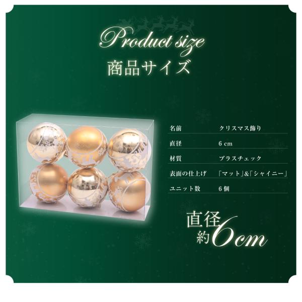 クリスマスツリー オーナメント 北欧 おしゃれ セットクリスマス ボール セット クリスマス 飾り 60mm ボール 6個入 ゴールド Christmas 装飾 mmk-gj08