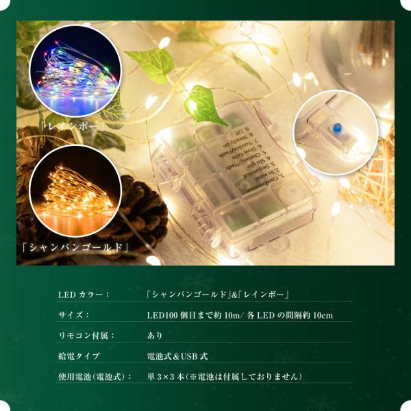 クリスマスツリー オーナメント LED ライト 北欧 おしゃれ 100cm 100球ライト 電池式 usb クリスマス 飾り 点滅 点灯 タイマー機能 装飾 Christmas mmk-led10