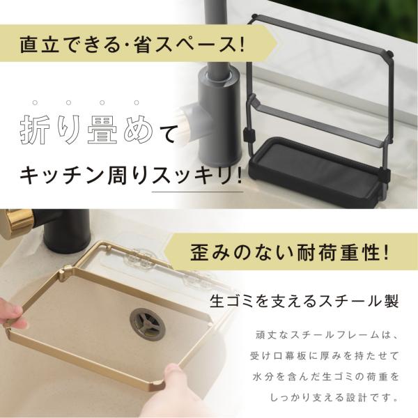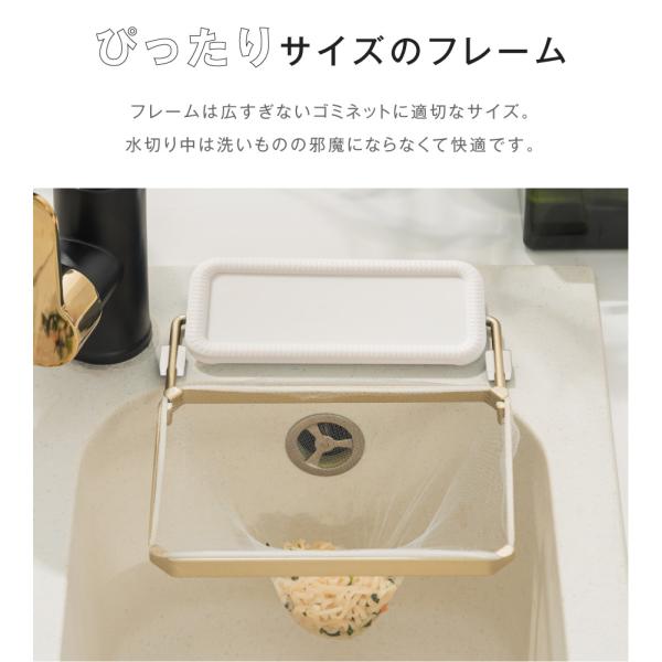 【ぴったりサイズのフレーム】フレームは広すぎないゴミネットに適切なサイズ。水切り中は洗いものの邪魔にならなくて快適です。