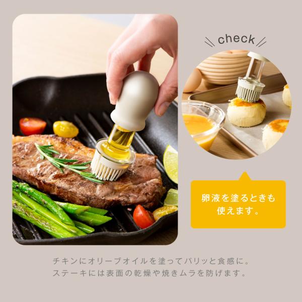 フライパンに油をひく、肉や魚にオリーブオイルを塗る、パンやお菓子に卵液を塗るなど、料理の幅が広がります。
