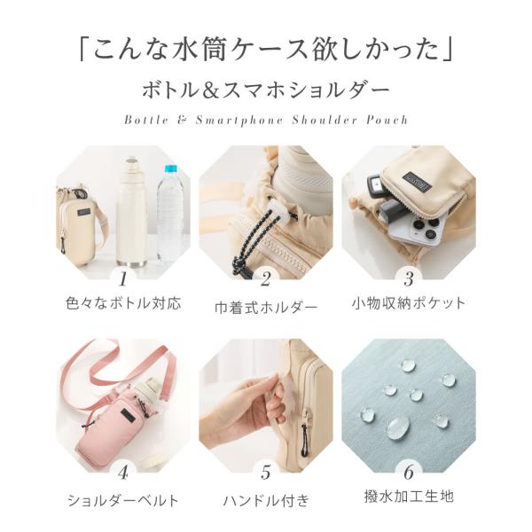 ボトルショルダースマホポーチ 3way ペットボトルホルダー 水筒カバー 撥水生地 斜め掛け 500ml-1000ml 水筒ケース 長さ調節可能 タオル アウトドア tbb-kb01