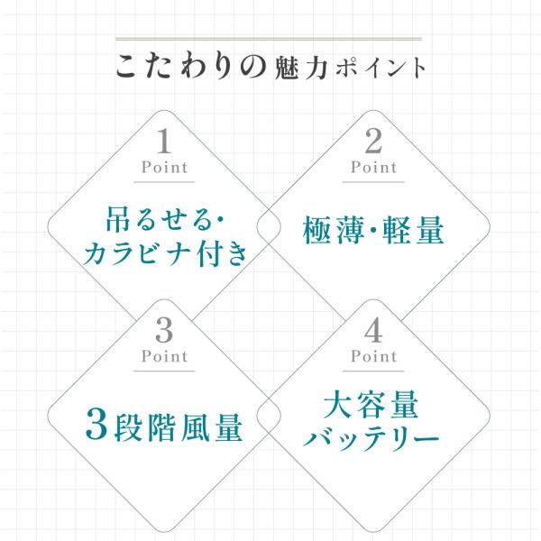 【仕様】 本体サイズ:約W7.3xD2xH14.5cm / 本体材質:ABS+PP/ 重量:約76g/充電容量:800mAh/電圧:DC5V/1A/消費電力:3W/風量:3段階
