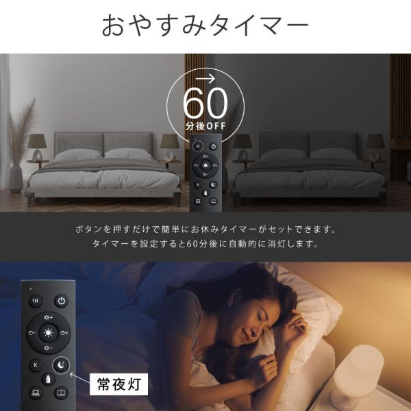 【おやすみタイマー】ボタンを押すだけで簡単にお休みタイマーがセットできます。タイマーを設定すると60分後に自動的に消灯します。