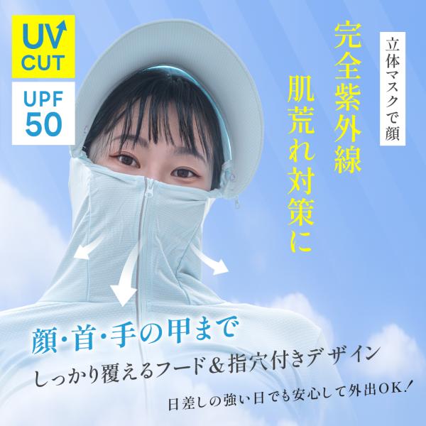 【UVカット率99.9%】本製品に使用している生地は、検査機関によるUV遮蔽率の試験結果に基づいて、その効果が証明されています。洗濯を繰り返してもUVカット機能が落ちにくい特殊繊維です。夏の紫外線、完全シャットアウト!涼しくて軽い、毎日着たくなるUVパーカー!今夏のマストアイテム。機能性とデザイン性を両立した一着で、快適な夏を過ごしましょう。 【ひんやり冷たい接触冷感】Q-max値0.3以上の接触冷感生地を採用。肌に触れた瞬間、ひんやり冷たい。真夏の炎天下でも汗がベタつかず、快適に過ごせます。毎日着たくなる、冷感&美シルエット! 【吸汗速乾・抜群の通気性】汗をかいても素早く吸収、拡散、蒸発、涼しく保つことができます、長時間着用しても不快感がなく、ストレスフリーの着用感です。 【変形しにくい伸縮性生地】縦横両方に伸縮するストレッチ素材で動きやすい。しめつけやツッパリ感がなくて、アクティブシーンにも最適です。大きめのツバは顔全体にすっぽり影を落とすので直射日光から守ります。