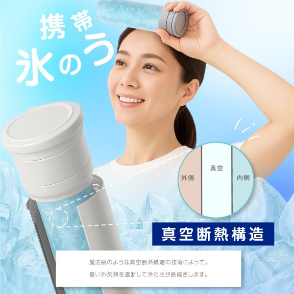 【真空断熱構造】魔法瓶のような真空断熱構造の技術によって、暑い外気熱を遮断して冷たさが長続きします。暑い時に氷のうとしてスポーツ、観戦、夏フェスなど様々なシーンで使えます。氷水を入れるだけで簡単にすぐ使えるので便利です。