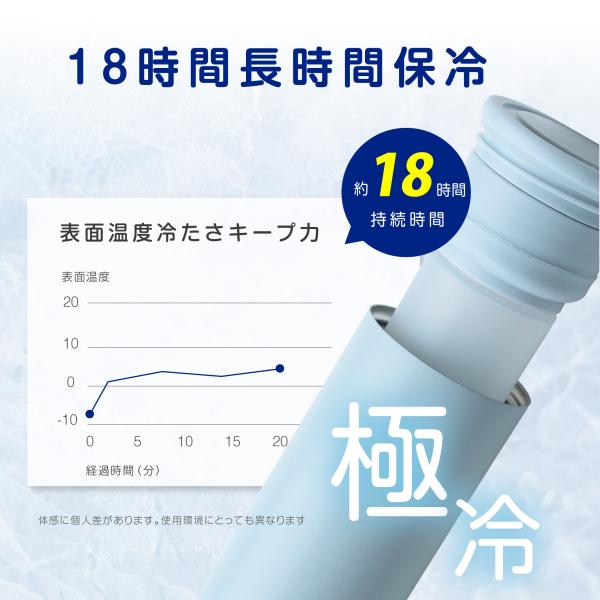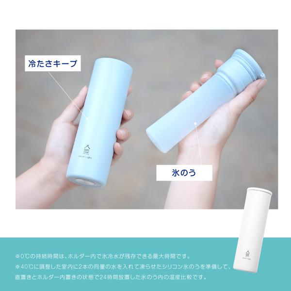 【製品仕様】商品サイズ:約直径5.3×H17.3cm / カラー:アイスブルー / 材質:ステンレス、シリコン、PP、ポリエステル / 容量:約 140ml / 重量:約190g