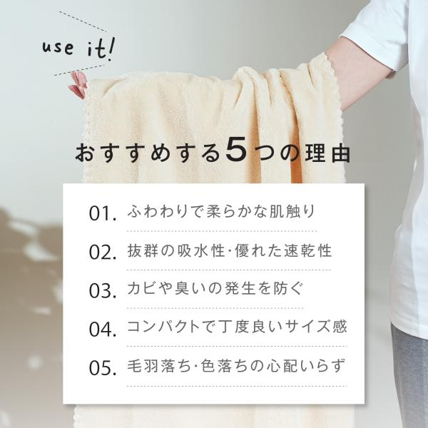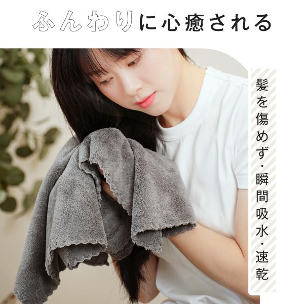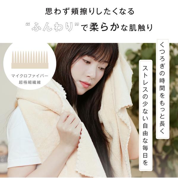 【抜群の吸水性優れた速乾性】吸水性は一般的な綿のタオルの約5倍!繊維に細かい溝状の隙間があり水分が吸い込まれます。洗って干して、早く乾く、速乾性も抜群!素早く水分を吸収するのでドライヤーの時短に繋がります。
