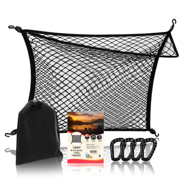 ラゲッジネット 車用 トランクネット 二重 80×60cm 伸縮 縁周り強化版 予備フック付き 荷室 収納ネット 荷物固定 SUV 軽自動車 ミニバン対応