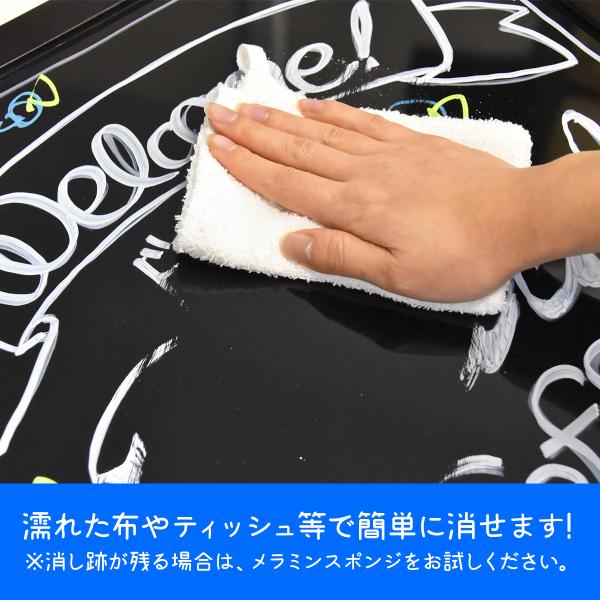 ※黒板の板面材質によっては消えにくい場合があります。その際はメラミンスポンジをお試しください。。