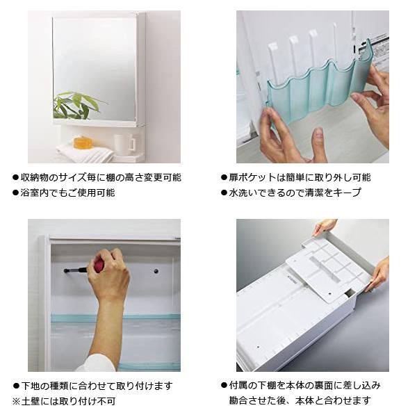 サニタリーラック 洗面所ラック 収納棚 キャビネット 鏡 ミラー リフォーム サニタリー チェスト 可動棚 扉 浴室内 バスルーム お風呂場 脱衣所 日本製 T-3260