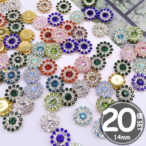 20個セット フラワー ビジュー ソーイングボタン 9mm 11mm クリスタルラインストーン 爪付き キラキラ アクセサリー 手芸 ハンドクラフト