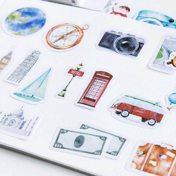 46枚 シール 旅 旅行 イラスト アンティーク ビンテージ デコステッカー アンティーク調 コラージュ レトロ