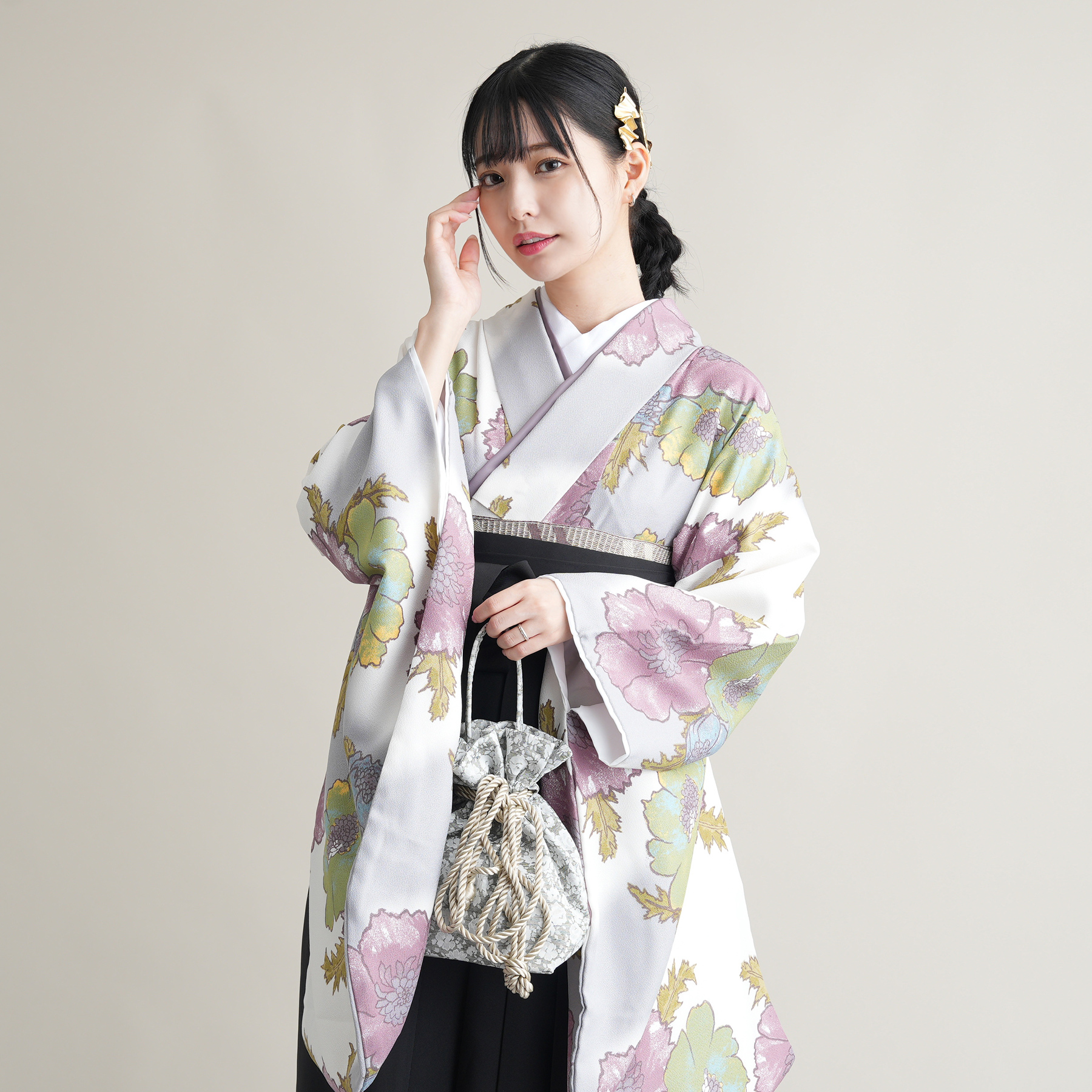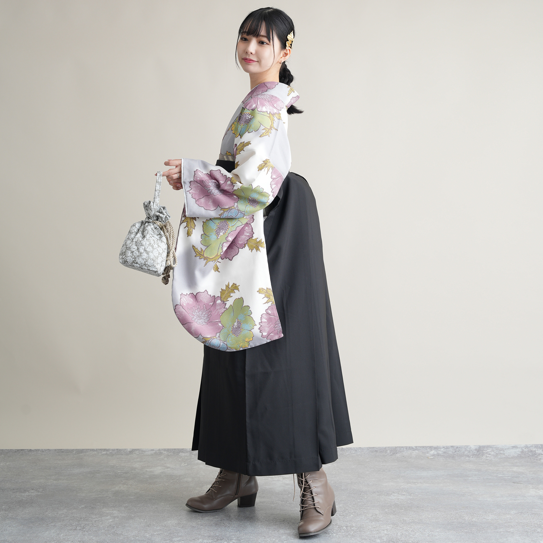 袴 中古 販売 卒業式 着物と袴の2点セット リサイクル着物セット 二尺 ひよこ商店 袴91cm 袴セット 大学生 重ね衿縫い付済 花柄 牡丹 レトロ 販売 購入
