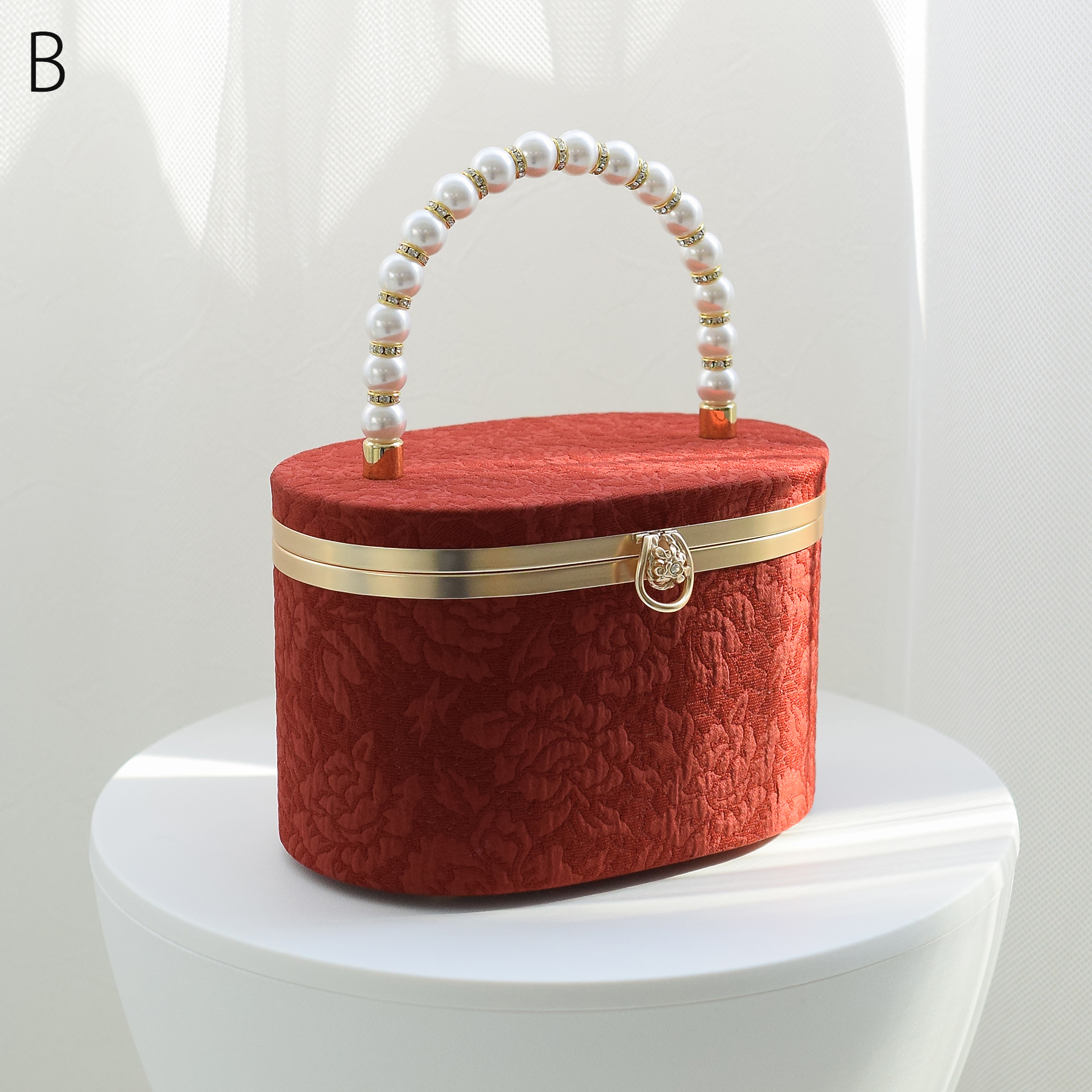 バッグ 成人式 ジャガード パールハンドル ジュエリーボックスとしても 日本製 振袖 フォーマル 金 銀 ゴールド シルバー 黒 白 着物 和装 レディース 結婚式
