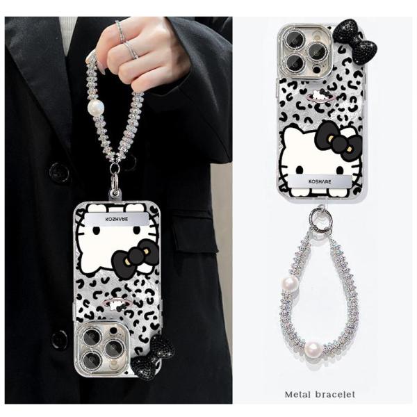 ストラップ付き キティちゃん iphone17スマホケース ヒョウ柄 蝶結び キティスマホケース iphone16iphone15ケース iphone14ケースiphone13ケース韓国 キラキラ