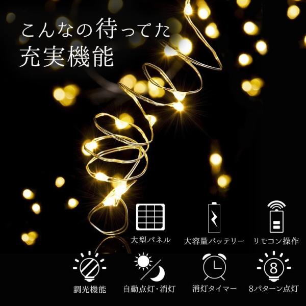 イルミネーションライト ソーラー イルミネーションソーラーライト 屋外用 クリスマス おしゃれ かわいい キャンプ(フェアリーライト ワイヤー ストレート)(イルミネーション ライト 屋外 led 電飾)