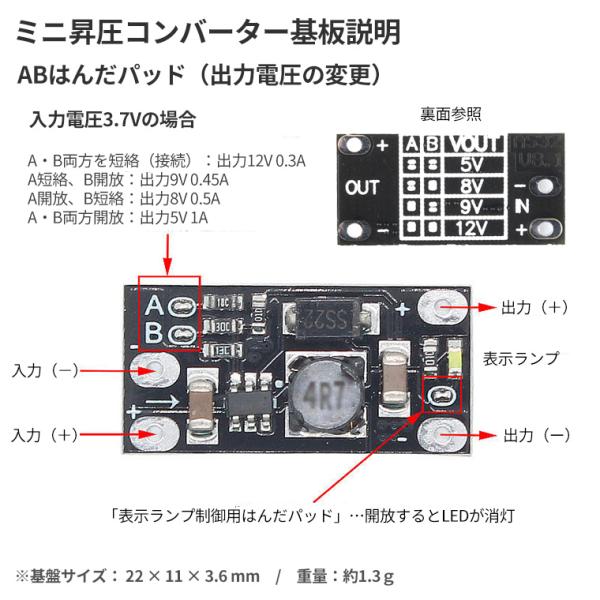 昇圧コンバーター DC-DCコンバーター ブーストコンバーター 電源モジュール 3.7V→12V ミニ昇圧モジュール DC電源昇圧 電子工作部品 モバイルバッテリー改造 小型電源モジュール