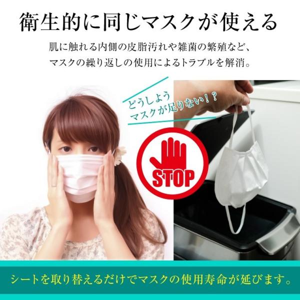 肌に触れる部分の皮脂汚れやニオイもシートを取り替えるだけで解消!衛生的にマスクを使い続けることができます。