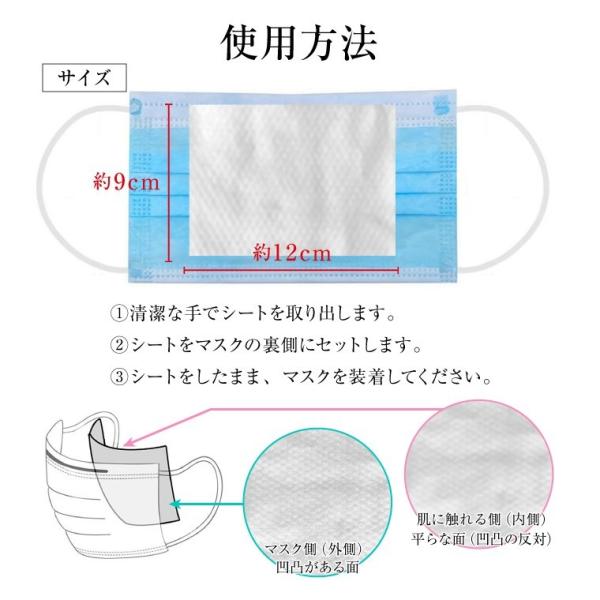 マスクの内側に入れて着用すると、花粉やウイルスへの防護力が高まります。
